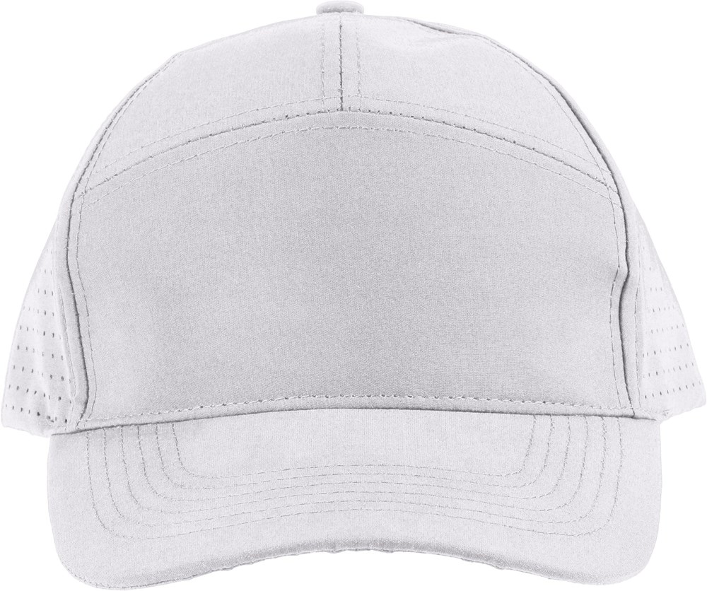 Mütze aus Polyester mit gelaserten Luftlöchern auf der Rückseite. Ausgestattet mit einem 7-Panel-Design mit Frontpanel und 7 cm Schild. Verstellbar, atmungsaktiv, ohne PU-Etikett.