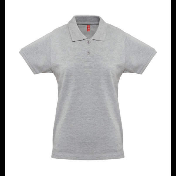 Damen Poloshirt aus Piqué Stoff 100% kardierter Baumwolle (240 g/m²), mit geripptem Kragen und Ärmel, Verstärkungsband am Kragen, seitliche Öffnungen, verstärkte Knopfleiste mit 2 farblich abgestimmten Knöpfen und einem Ersatzknopf an der Innennaht. Etikett entfernbar. Größen: S, M, L, XL, XXL