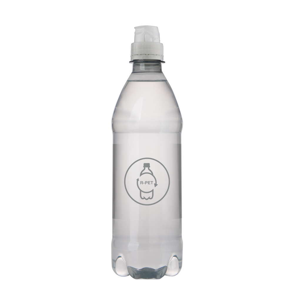 500 ml natürliches Quellwasser in einer transparenten Flasche mit Sportverschluß. Farbe Kappe transparent.
