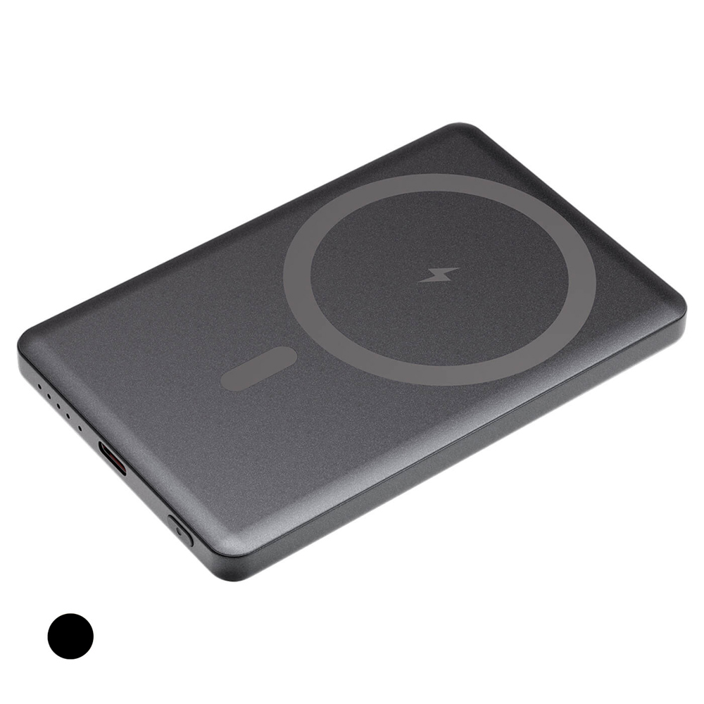 5.000 mAh MagSafe Powerbank mit Power Delivery-Funktion und kabellosem Ladegerät mit einem Gehäuse aus recyceltem Aluminium. Kompatibel mit allen Geräten wie Smartphones, Tablets und kleinen Laptops, bietet es vielseitiges und sicheres Laden, egal wo Sie sind. Mit einem schlanken und eleganten Design von nur 0,7 cm Dicke ermöglicht es kabelloses Laden mit einer Leistung von bis zu 15W für iPhones und bis zu 3W für TWS-Kopfhörer. Ein TPE-Kabel mit Type-C-Anschlüssen ist im Lieferumfang enthalten. Dieses Produkt kann mit einem Firmenlogo durch Lasergravur, UV-Digitaldruck oder DTF-Digitaldruck individuell gestaltet werden.
