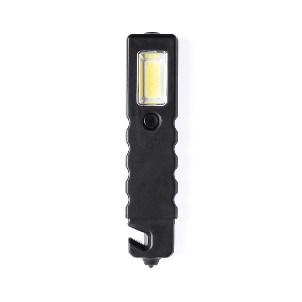 3-in-1 Notfallhammer mit LED-Taschenlampe mit 4 COB-LEDs und 3 Lichteinstellungen. Mit magnetischer Oberfläche und Gurtschneider.