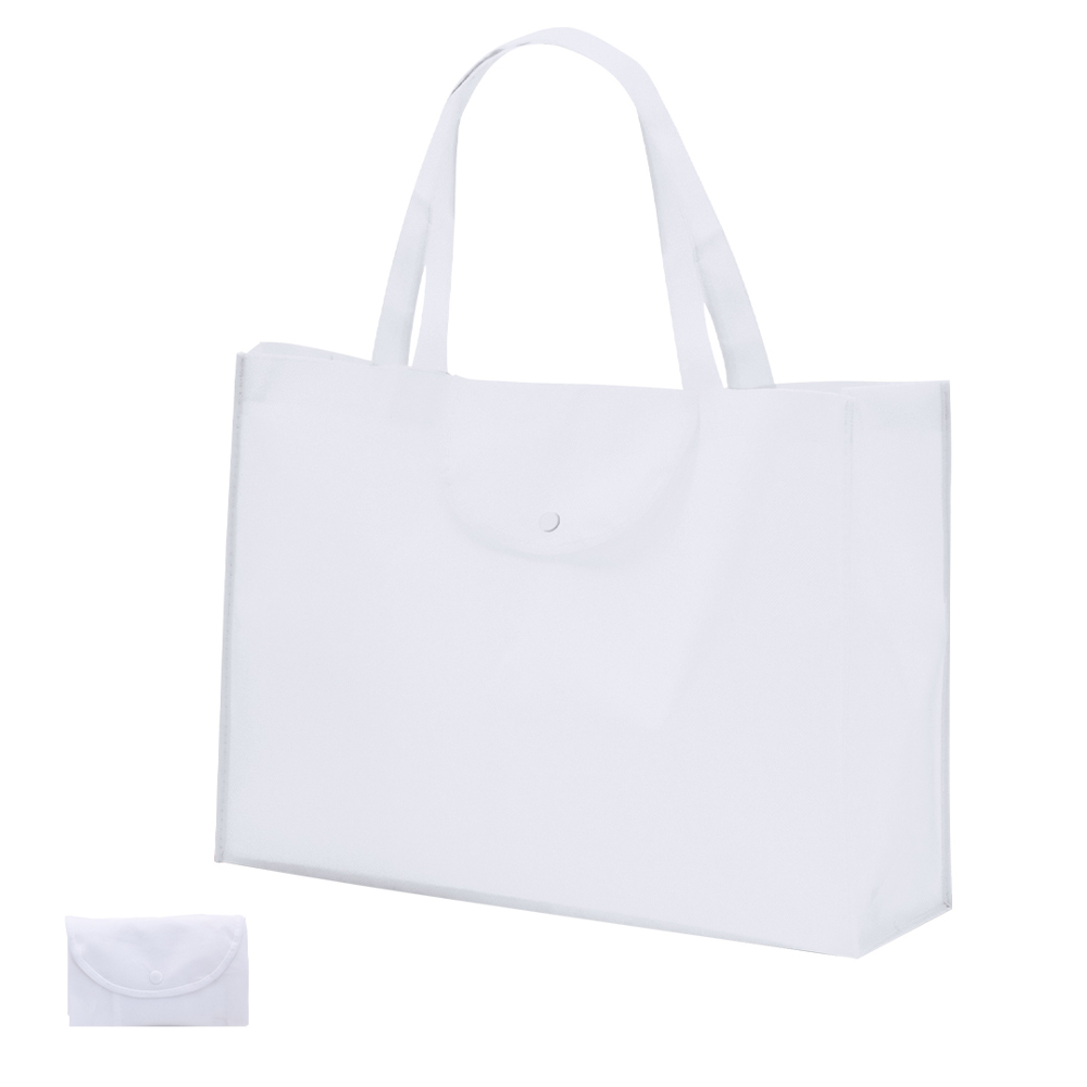 Faltbare Non-Woven-Tasche aus Faservlies (90 g/m2) in verschiedenen lebendigen Farben. Mit 56 cm langen Griffen, farblich passender Verschlussklappe mit Knopf, verstärkten Zwickeln mit Paspel und Steppnähten. Faltbar auf kleine Größe. Belastbar mit bis zu 9 kg.