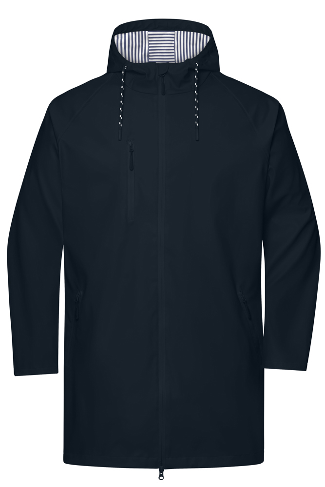 Wind- und wasserdichtes elastisches Material (3.000 mm Wassersäule) Gedruckter Streifen auf der Material-Innenseite sowie farblich abgesetzte Details Nähte sind versiegelt und alle Reißverschlüsse wasserdicht Verstellbare Kapuze mit Kordel Verlängertes Rückenteil Unterarmbelüftung mit Ösen Druckknöpfe zur Weitenregulierung am Ärmel Durchgehend unterlegter 2-Wege-Reißverschluss mit Kinnschutz 2 seitliche Taschen und eine Brusttasche mit Reißverschlüssen Reißverschlüsse: YKK 1/2 Oberweite: 51 cm 1/2 Taillenweite: 50 cm 1/2 Saumweite: 52 cm Länge ab Schulter Vorderteil: 90 cm Länge ab Schulter Rückenteil: 94 cm Armlänge Raglan: 74,50 cm Wassersäule ab 1.500 mm Wassersäule ab 2.000 mm Wassersäule ab 3.000 mm Nähte versiegelt Reißverschluss: Wasserdicht Reißverschluss 2-Wege YKK - Reißverschluss