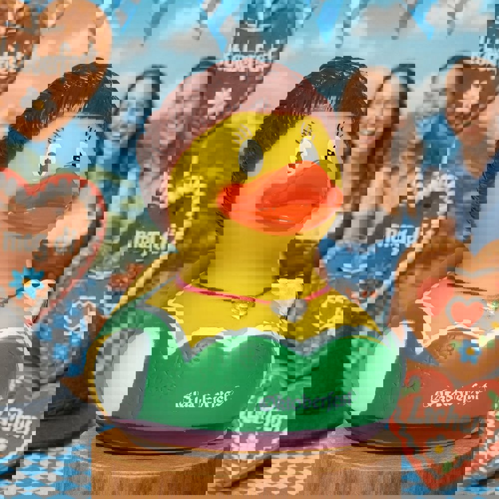 Im farbenfrohen Dirndl mit liebevollen Details verkörpert diese offiziell lizenzierte Quietsche-Ente das besondere Flair Süddeutschlands. Ob als Sammlerstück oder originelles Souvenir – die Oktoberfest™ Ente „Dirndl“ sorgt für gute Laune und bleibt lange im Gedächtnis. Jede Ente ist einzeln verpackt und eignet sich ideal zum Verschenken. Lizenzprodukt – Oktoberfest™ ist eine Marke der Landeshauptstadt München.
