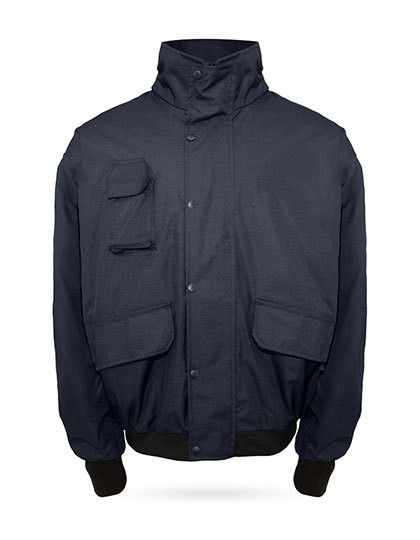 Pilotenjacke mit abnehmbarer Kapuze im Kragen, verstellbarer Kordel, aufgesetzter Handytasche an der Brust, zwei Außentaschen mit Patten | Optimaler Wetterschutz dank verschweißter Nähte und verdecktem Frontreißverschluss mit Druckknopfleiste | Veredelungszugänge für individuelle Anpassung | Wasserdichtes und winddichtes Obermaterial mit wärmendem Steppfutter | Atmungsaktiv und langlebig, ideal für wechselhafte Wetterbedingungen und professionelle Einsatzbereiche | Geprüft nach EN 343:2019 | Einzeln in Polybeutel verpackt und mit Barcode ausgestattet