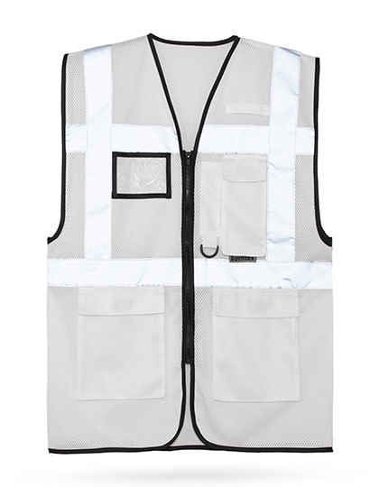 Multifunktionale Mesh Warnweste mit Reißverschluss und Taschen | Auch bei hohen Temperaturen komfortabel durch Mesh-Gewebe und lockerer Passform | Zwei je 5 cm breite Reflexstreifen um den Körper und über den Schultern für eine gute Sichtbarkeit | Ausgestattet mit diversen Taschen sowie einem D-Ring | Zertifiziert nach EN ISO 20471