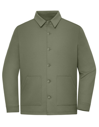 Elastische Strick-Qualität im Materialmix aus Bio-Baumwolle und recycletem Polyester | Konfektionierter Kragen | Schulter- & Rückenpasse | Aufgesetzte Taschen | Manschettenverschluß am Ärmel
