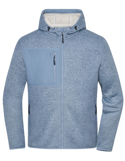 Weiche, wärmende Qualität in Melange-Optik | Außenseite Strick-Optik, Innenseite flauschiges Sherpafleece | Angeschnittene und regulierbare Kapuze | Kontrastfarbiger Webstoffbesatz an Kapuzenöffnung innen | 2 Seitentaschen mit Reißverschluss, 1 Brusttasche aus kontrastfarbigem Webstoff mit Reißverschluss | 2 große Innentaschen | Durchgehend hinterlegter Reißverschluss mit Kinnschutz | Kontrastfarbige Paspel an allen Reißverschlüssen | Reißverschlüsse: YKK