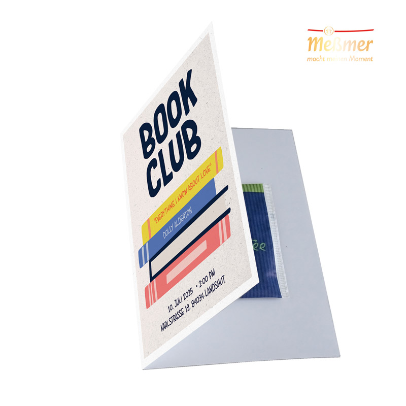 Klappkarte im DinA6 Format mit 1 Meßmer Teebeutel geklebt an der Innenseite der Karte. Die Werbung drucken wir auf allen Seiten der Klappkarte. Unter "Anhänge" können Sie alle Teesorten herunterladen. Beim Bestellvorgang, geben Sie unter "Kommentare" die gewünschte bzw. gewünschten Tessorte/n ein.