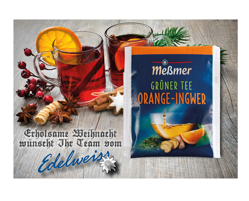 Individuell, beidseitig bedruckte Karte im DinA6 Format versehen mit 1 Meßmer Teebeutel Ihrer Wahl. Unter "Anhänge" können Sie alle Teesorten herunterladen. Beim Bestellvorgang, geben Sie unter "Kommentare" die gewünschte bzw. gewünschten Tessorte/n ein.