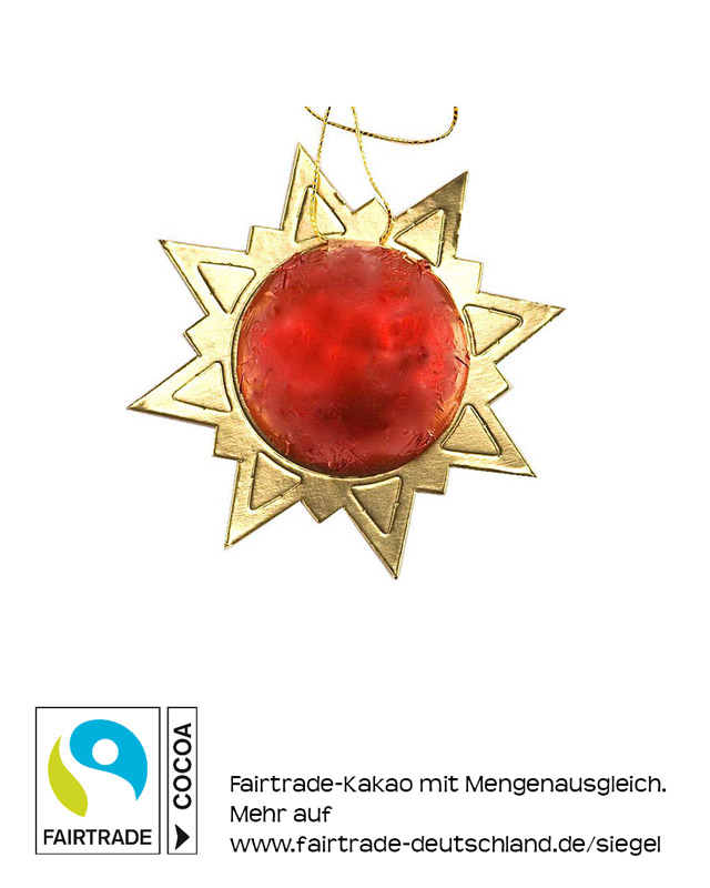 Schokoladen-Starlight mit Goldfaden aus Fairtrade Edelvollmilchschokolade, mindestens 33% Kakao. mehr