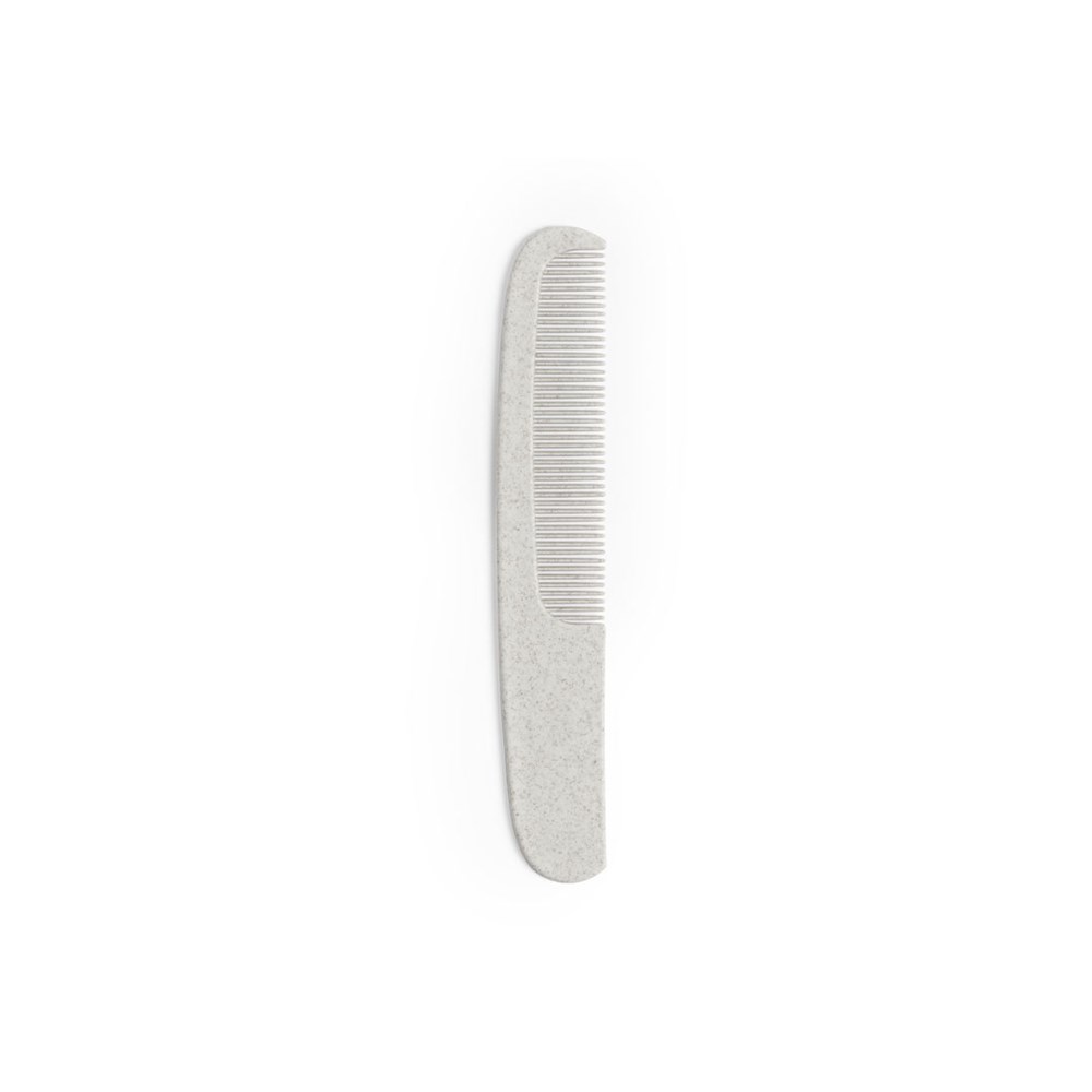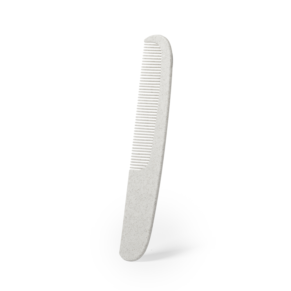 Weizenstrohkamm aus unserer Naturlinie, um die Verwendung natürlicher Rohstoffe zu fördern und Schadstoffemissionen zu reduzieren. Breite Druckfläche auf dem Griff.