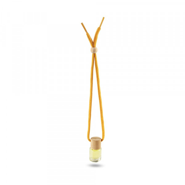 Auto-Lufterfrischer mit Oceanduft in 5 ml Glas mit Holzdeckel und farblich passender Kordel zum Aufhängen mit Kordelstopper aus Holz. Präsentiert in einer individuellen PVC-Box.