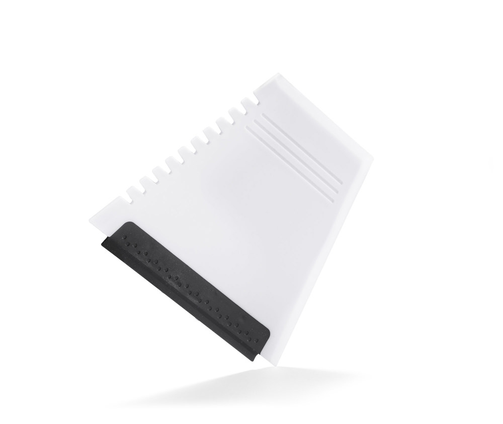Eiskratzer mit 3 Endungen: flache,scharfe mit Eisbrechzähnen, gummi. Aus Kunststoff.