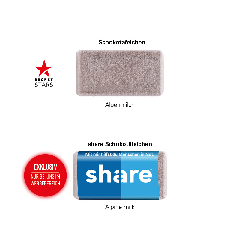 Adventskalenderturm in Vollkartonhülle mit Papierblister, rundum individuell bedruckt. mit 5 Werbeflächen. Inhalt: 24 Alpenmilch-Schokotäfelchen, eingewickelt in Pergaminpapier, 72 g Kartons à 24 Stück, Produktkarton = Umkarton Saisonartikel - solange der Vorrat reicht!