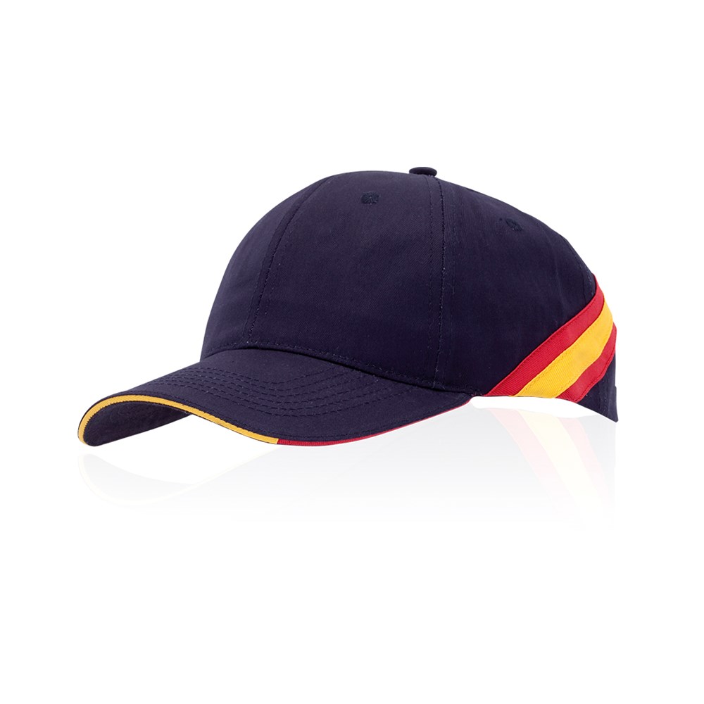 Baseball Cap mit Flaggen-Design aus gekämmter Baumwolle. Mit 6 Panelen sowie dreifarbigem Kontrastrand und Flaggenelementen an den Seiten und am Hinterkopf. Mit umstickten Belüftungsöffnungen und verstellbarem Klettverschluss.