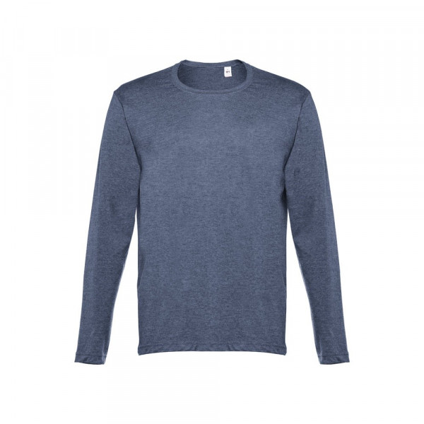 Herren Langarmshirt aus 100% Strickjersey und Baumwolle (150g/m²) mit kardiertem Baumwollfaden, in Tubular-Form, geripptem Kragen in 1x1 Ripp, Jersey-Verstärkung und Doppelnaht an Ärmeln und Saum. Bei den Farben 195, 195 bestehend aus 60% Baumwolle und 40% Polyester, Farbe 183 bestehend aus 90% Baumwolle und 10% Viskose. Größen: S, M, L, XL, XXL