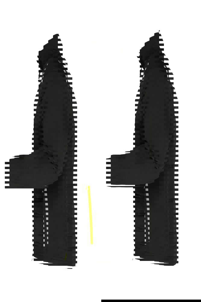 Pflegeleichtes 2-Lagen Softshellmaterial kombiniert mit gesteppten Einsätzen im Vorder- und Rückenteil