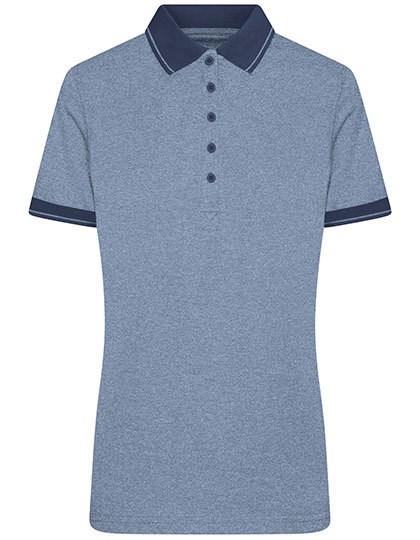 Melange-Polo mit modischen Details | Feiner Single Jersey | Lässige Schnittform | Gestrickter Polokragen und Armbündchen mit Kontraststreifen | Leicht taillliert | 5 Knöpfe