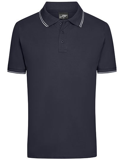 Polo in elastischer Piqué-Qualität | Gekämmte, ringgesponnene Baumwolle | Gestrickter Polokragen und Armbündchen mit Kontraststreifen | Seitenschlitze kontrastfarbig abgesetzt | Drei Knöpfe