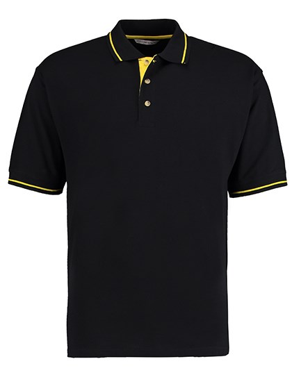 1x1-Rippstrickkragen und -bündchen mit Kontraststreifen | Schräge Kontrastknopfleiste mit drei Knöpfen | Kontrastierende Seitenschlitze mit Fischgrätenmuster | Halbmondförmige Rückenpasse | Verstärkte Schulternähte | Doppelte Ziernähte an den Bündchen | Nackenband und Innenkragen aus dem gleichen Stoff in Kontrastfarbe | Doppelte Ziernähte an Armausschnitten und Schulternähten | Doppelnadel-Saum | Ersatzknopf am Pflegeetikett | Gewebtes Nackenetikett