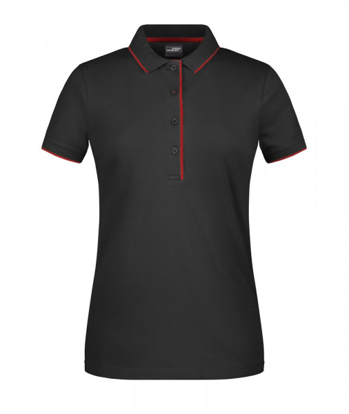 Hochwertige Piqué-Qualität Gekämmte, ringgesponnene Baumwolle Gestrickter Polokragen und Armbündchen mit Kontraststreifen Knopfleiste innen in Kontrastfarbe Knöpfe Ton in Ton Seitenschlitze JN727: taillierter Schnitt, 4 Knöpfe JN728: 3 Knöpfe 1/2 Oberweite: 44 cm Länge ab Schulter: 61 cm Ärmel Länge: 17 cm OEKO-TEX® Standard 100 (15.0.70467) Baumwolle
