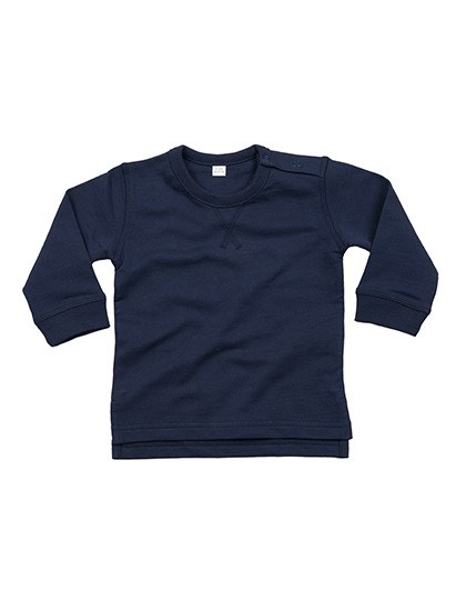 Zertifizierung als Bio-Baumwolle in Arbeit/ recyceltes Polyester (rPET) | French Terry | Rundhals-Sweatshirt mit 2 Druckknöpfen an der Schulter für leichteres An- und Ausziehen | Weicher Ripp-Rundhalsausschnitt | Weiche Ripp-Bündchen an den Ärmeln | Gerader Saum mit Seitenschlitzen und verlängertem Rücken | V-Stick-Detail an der Vorderseite | Abreißbares Nackenlabel