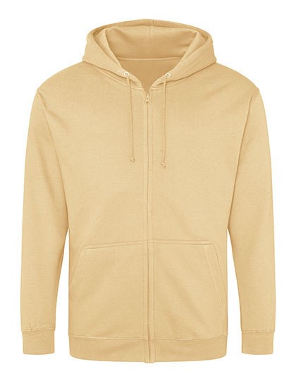 Ringgesponnene Baumwolle | Standard-Passform | Kapuzen-Sweat-Jacke mit durchgehendem Reißverschluss | Verdeckter YKK-Reißverschluss aus demselben Material | Doppellagige Kapuze | Runde Kordelzüge | Kängurutaschen | Gebürstetes Innenvlies | Gerippte Ärmelabschlüsse und Saum | Zwillingsnadelstich-Detail | 100 % Baumwoll-Obermaterial | Abreißetikett