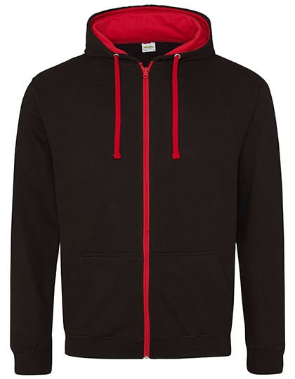 Ringgesponnene Baumwolle | Standard-Passform | Kapuzen-Sweat-Jacke mit durchgehendem Reißverschluss | Kontrastierender YKK-Reißverschluss aus Kunststoff | Doppellagige Kapuze mit kontrastfarbener Innenseite | Flache Zugbänder in Kontrastfarbe | Kängurutaschen | Gebürstetes Innenvlies | Gerippte Ärmelabschlüsse und Saum | 100 % Baumwoll-Obermaterial | Abreißetikett