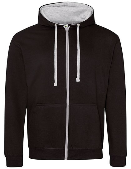 Ringgesponnene Baumwolle | Standard-Passform | Kapuzen-Sweat-Jacke mit durchgehendem Reißverschluss | Kontrastierender YKK-Reißverschluss aus Kunststoff | Doppellagige Kapuze mit kontrastfarbener Innenseite | Flache Zugbänder in Kontrastfarbe | Kängurutaschen | Gebürstetes Innenvlies | Gerippte Ärmelabschlüsse und Saum | 100 % Baumwoll-Obermaterial | Abreißetikett
