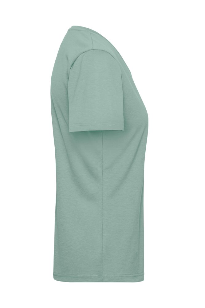 Materialmix aus gekämmter, ringgesponnener BIO-Baumwolle und Polyester für optimale Form- und Waschbeständigkeit Halsbündchen mit Elasthan, Necktape 60°C waschbar, trocknergeeignet JN1807: V-Ausschnitt, leicht tailliert JN1808: Rundhalsausschnitt 1/2 Oberweite: 43 cm 1/2 Taillenweite: 38 cm 1/2 Saumweite: 45 cm Länge ab Schulter: 62 cm Ärmel Länge: 18 cm Work-Level: ESSENTIAL OEKO-TEX® Standard 100 (15.0.70467) Große Größen Waschbar mit 60°C Bio Baumwolle OCS Standard blended V-Ausschnitt
