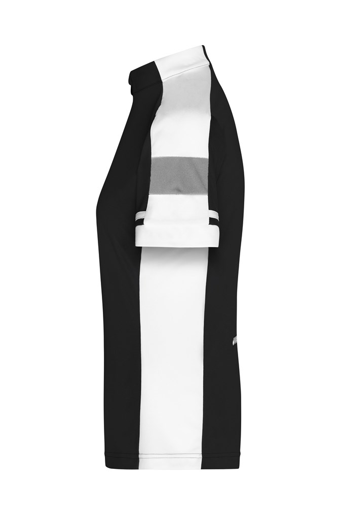 Atmungsaktiv, feuchtigkeitsregulierend, schnell trocknend, leicht und komfortabel Arretierbarer, unterlegter Reißverschluss mit Kinnschutz Kontrastfarbige Einsätze Rückentasche mit arretierbarem Reißverschluss JN451: Leicht tailliert 1/2 Oberweite: 44 cm 1/2 Taillenweite: 39 cm 1/2 Saumweite: 46 cm Länge ab Schulter Vorderteil: 62 cm Ärmel Länge: 20 cm OEKO-TEX® Standard 100 (15.0.70467) CoolDry® Atmungsaktiv Stehkragen Sublimations-Textilien