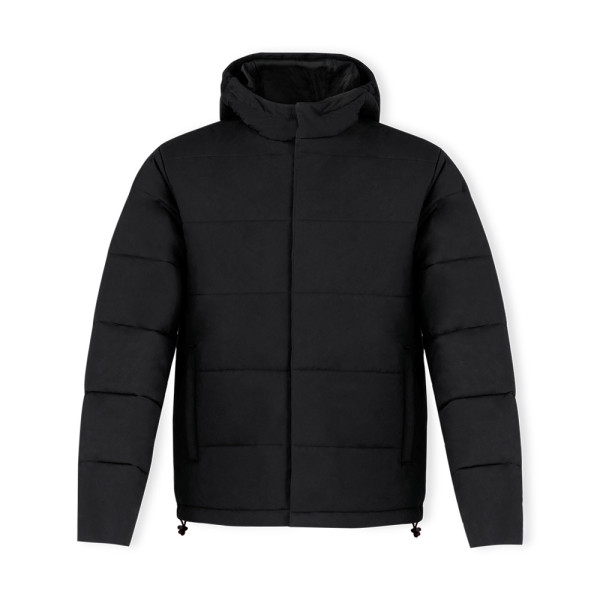 Jacke im Parka-Stil, mit Kapuze, aus warmem und weichem Material (100% Polyester). Aus leichtem, wind- und wasserabweisendem Material. Elegante horizontale Konstruktion und gestepptes Design, mit integrierter fester Kapuze. Doppelter Frontreißverschluss und Haken- und Ösenverschluss. Seitentaschen mit passenden Zippern und verstellbarem Kordelzug am Saum. Erhältlich in den Größen XS, S, M, L, XL, XXL.