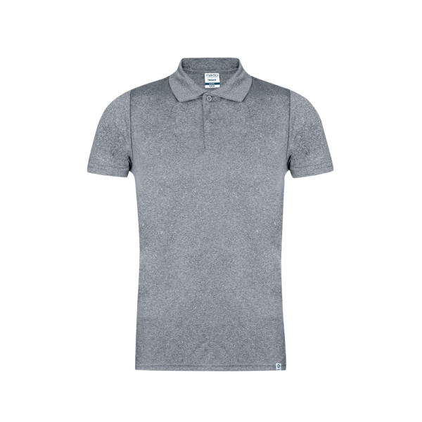 Technisches Unisex-Kurzarm-Poloshirt. Hergestellt aus 100 % recyceltem Polyestergewebe und in Melange-Effekt-Farbe. Mit einer Grammatur von 150 g/m2 ist es ein leichtes Kleidungsstück, ideal für Sport und Alltag. Sehr weicher Griff und moderner Schnitt. Zwei Ton-in-Ton-Knopfleisten. Atmungsaktiver Stoff, leicht zu waschen und schnell trocknend. Doppelnähte an Saum und Ärmeln sorgen für Langlebigkeit und Widerstandsfähigkeit bei intensiver Nutzung. Leicht ablösbares Etikett. Mit äußerem RPET-Etikett, das auf ein recyceltes Produkt hinweist. Erhältlich in den Größen XS, S, M, L, XL und XXL.