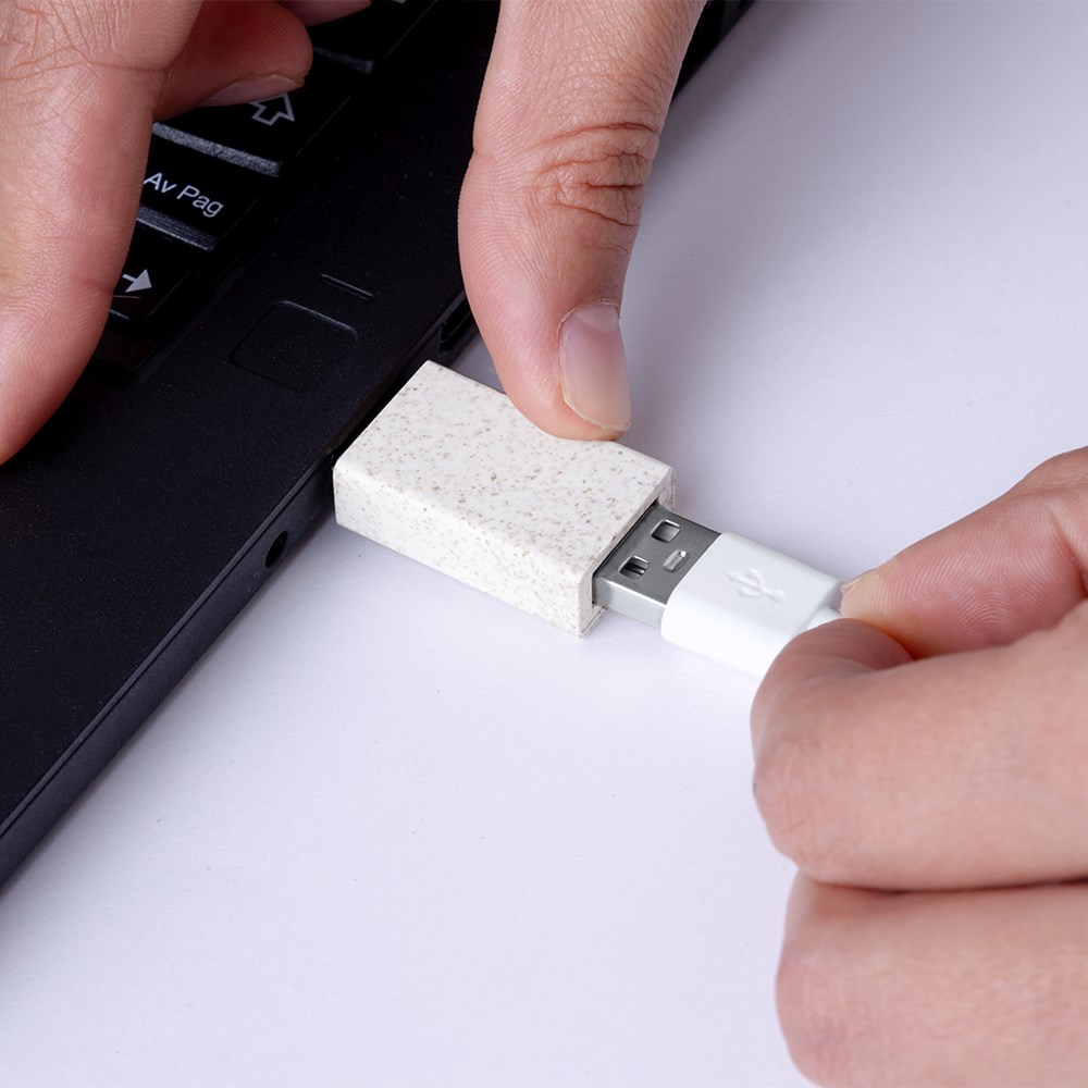 Praktisches Set für Sicherheit und Datenschutz. Enthält eine RFID-geschützte Karte aus Bambus, eine Webcam-Abdeckung aus Weizenstroh und einen Datenblocker aus Weizenstroh, der die Datenübertragung verhindert und das Aufladen des Geräts ermöglicht. Präsentiert in einer eleganten Schachtel mit ausgestanzten Fächern für jedes Zubehörteil.Materialien wie Bambus fördern die Verwendung von natürlichen Rohstoffen und reduzieren die Schadstoffemissionen. Es handelt sich um eine sehr widerstandsfähige und vielseitige Pflanze, die schnell wächst und sich regeneriert, was sie zu einer hervorragenden Alternative zu herkömmlichem Holz macht.